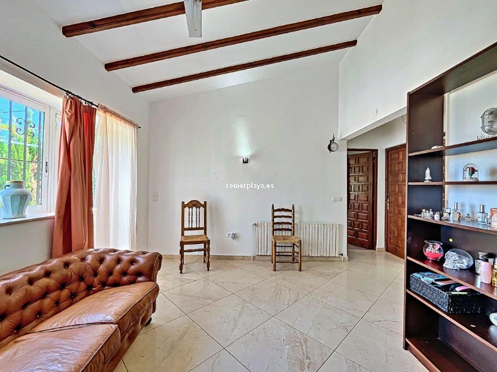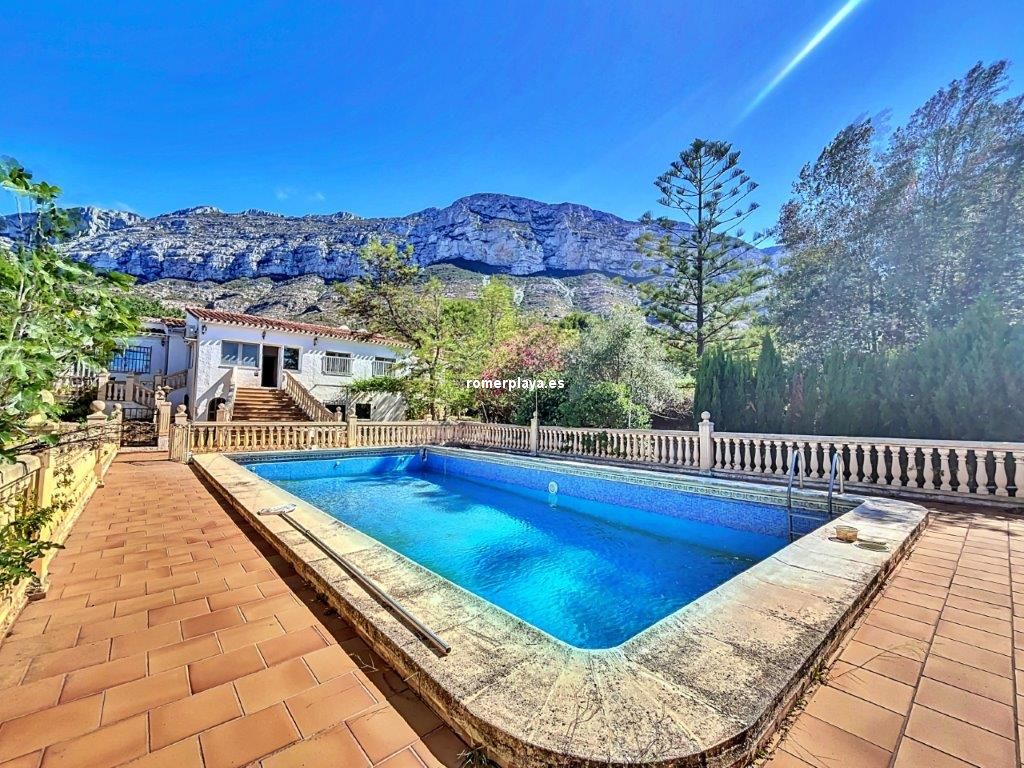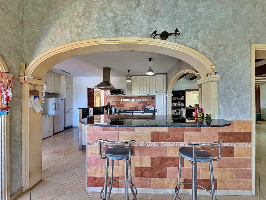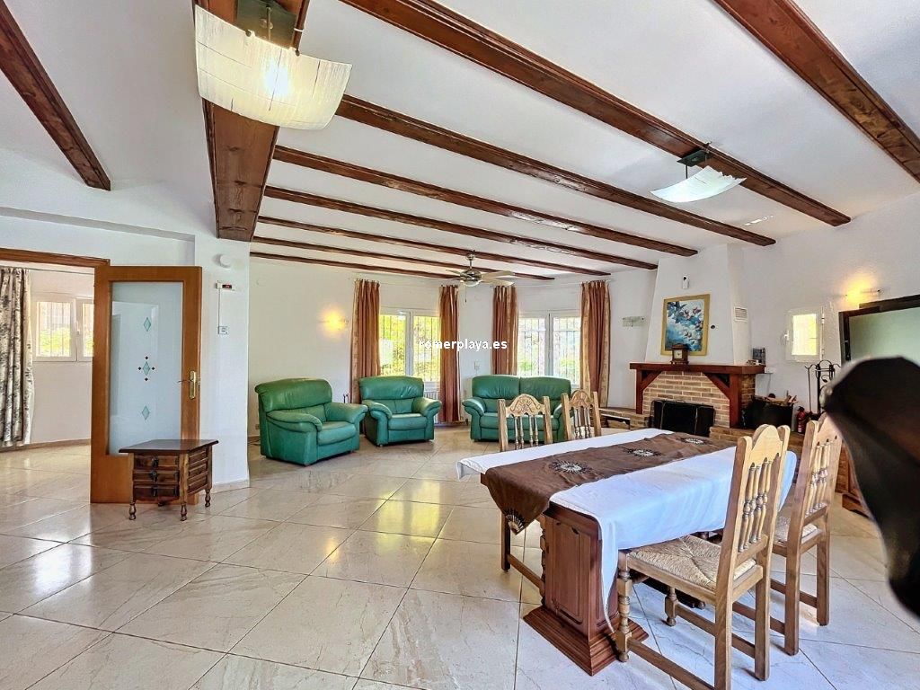 Ubicada en la exclusiva zona residencial bajo el parque natural del Montgó, esta villa construida en 1987, con hermosas vistas al mar y el Montgó, ha sido reformada y ampliada, ofreciendo ahora espacios contemporáneos y generosamente diseñados en ambas plantas. Superficie Construida según Catastro 545 metros cuadrados, sobre una parcela de 1935 metros cuadrados, se distribuye en 8 habitaciones dobles y 3 baños. Espacios Interiores Elegantes y Funcionales La propiedad cuenta con una cocina abierta de gran tamaño, integrada con el salón/comedor, creando un espacio perfecto para cocinar, relajarse y disfrutar en familia. Este espacio fluye hacia varias terrazas conectadas, ideales para el entretenimiento y la vida al aire libre. Ambientes Cálidos y Acogedores En invierno, la combinación de una chimenea térmica y la calefacción central de gasoil asegura un ambiente cálido y confortable. Una impresionante escalera desciende a una gran terraza frontal y a una piscina de aproximadamente 13 x 6 m, rodeada de áreas para cenar al aire libre. Distribución Práctica y Cómoda El pasillo principal da acceso a cuatro dormitorios, dos baños y un acogedor salón con salida a una de las terrazas. Una escalera interior conduce al semisótano, un espacio fresco en verano y cálido en invierno, que incluye un amplio salón, cuatro dormitorios adicionales, una sala técnica y un taller con salida al exterior. Jardines y Espacios Exteriores Entorno Natural y Privado Rodeada de un jardín natural con numerosos árboles maduros, parcela de 1935 metros cuadrados, la villa ofrece un entorno de tranquilidad y privacidad. Gran Piscina con depuradora. En la parte trasera de la piscina y la segunda calle, se encuentra una parcela, que ofrece múltiples posibilidades de desarrollo. Detalles y Calidades - Lavandería - Solárium - Calefacción central de gasoil combinada con chimenea térmica de leña, conectada a radiadores. - Chimenea con sistema de calentamiento a través de un sistema de agua caliente. - Persianas, algunas de ellas eléctricas, con mosquiteras. - Doble acristalamiento para mayor eficiencia energética. - Aire acondicionado frío calor en todas las estancias. - Ventiladores de techo - Conexión a Internet para mantenerse siempre conectado. - Puerta automática de acceso a la Villa para mayor seguridad y comodidad. - Varias terrazas - Aljibe para recoger el agua de la lluvia - Casita de herramientas exterior para almacenamiento adicional. Esta magnífica villa, con su amplio espacio interior y exterior, es perfecta para una familia grande o para aquellos que disfrutan recibiendo invitados. ¡Una propiedad excepcional en una ubicación envidiable! La descripción del presente inmueble e imágenes tienen mero carácter informativo y en ningún caso carácter contractual, pudiendo ser modificados por la inmobiliaria comercializadora sin que ello implique responsabilidad alguna frente a terceros. En el precio de venta a público, esta propiedad NO incluye los gastos de adquisición (Notario, registro, gestión, honorarios, etc…).