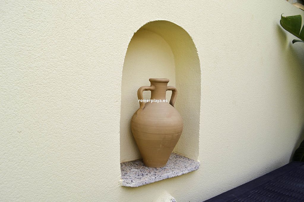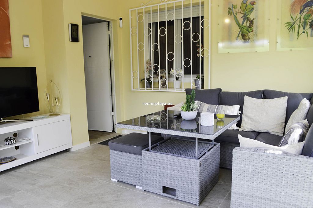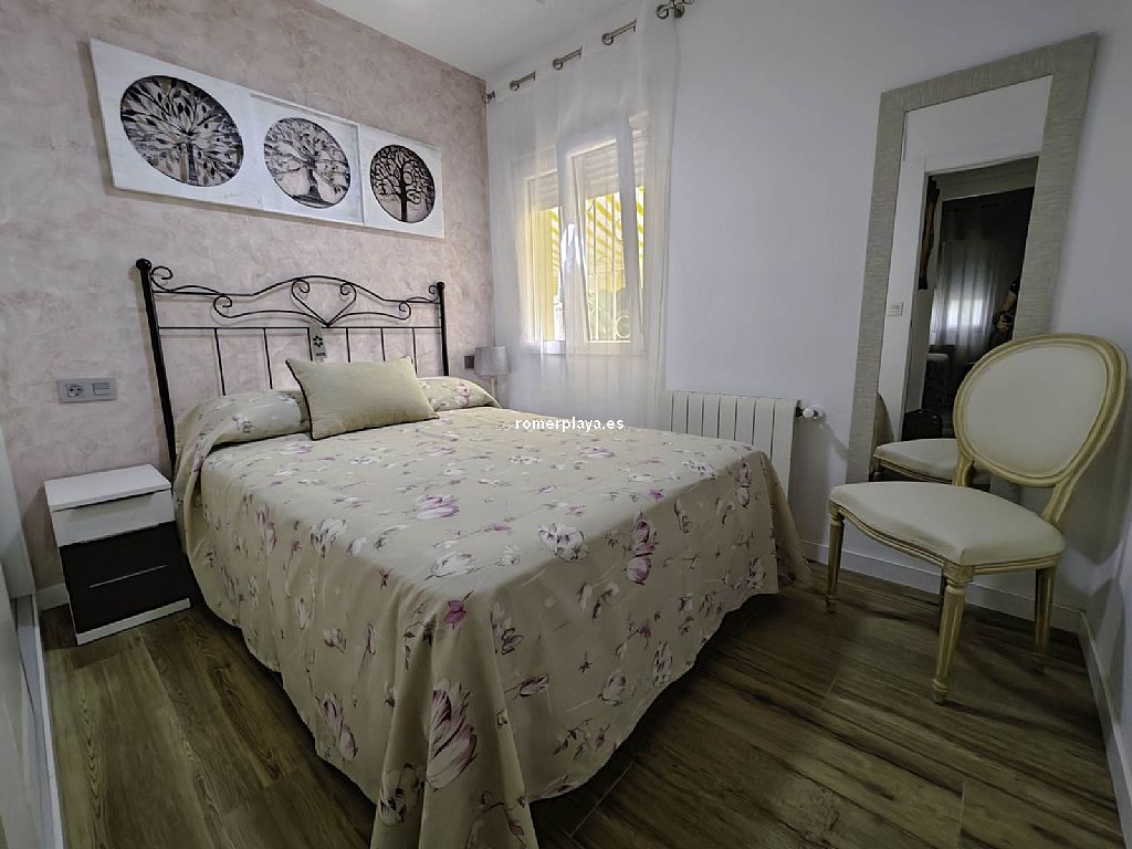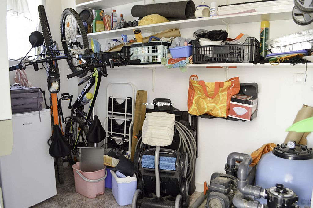 Chalet unifamiliar independiente de 4 dormitorios a un paso de playa de arena, en la zona de Las Brisas. La vivienda, construida toda en una planta, cuenta con una superficie total construida de 121,62 m2 distribuidos en 4 dormitorios, 2 baños (1 en suite), salón-comedor, cocina, lavadero, trastero cerrado y 2 terrazas cubiertas con diferentes orientaciones. Mediante escalera exterior tenemos acceso a un amplio solarium con preciosas vistas al Montgó y los alrededores. Con buenas calidades de construcción, la vivienda ha sido recientemente renovada. Toldos con sensores de viento, ventanas con doble cristal, luces led exteriores con sensor de movimiento, ventiladores techo, aire acondicionado (frío y calor), placas solares, calefacción de gas, ... Está construida sobre una parcela de 623,50 m2, totalmente llana y esquinera con mucha privacidad. Piscina independiente, ducha con agua caliente, toldos con sensor de viento, pozo para riego, parking techado para 2 coches con puerta corredera automática. Ubicada en una de las zonas más cotizadas de la playa de Dénia, en la zona del Centro Comercial Las Brisas a escasos 3 kms. del centro del pueblo y que cuenta con todo tipo de servicios abiertos todo el año: farmacia, supermercado, restaurantes, tiendas, ... Con parada de autobús cerca. Una vivienda ideal para veranear, pasar largas temporadas e incluso como vivienda habitual.