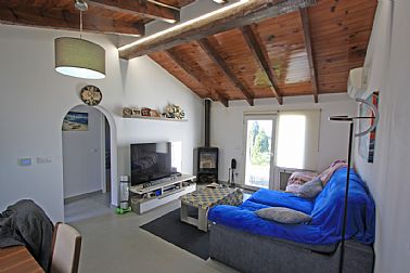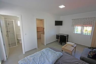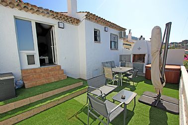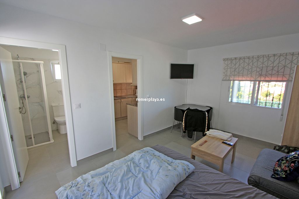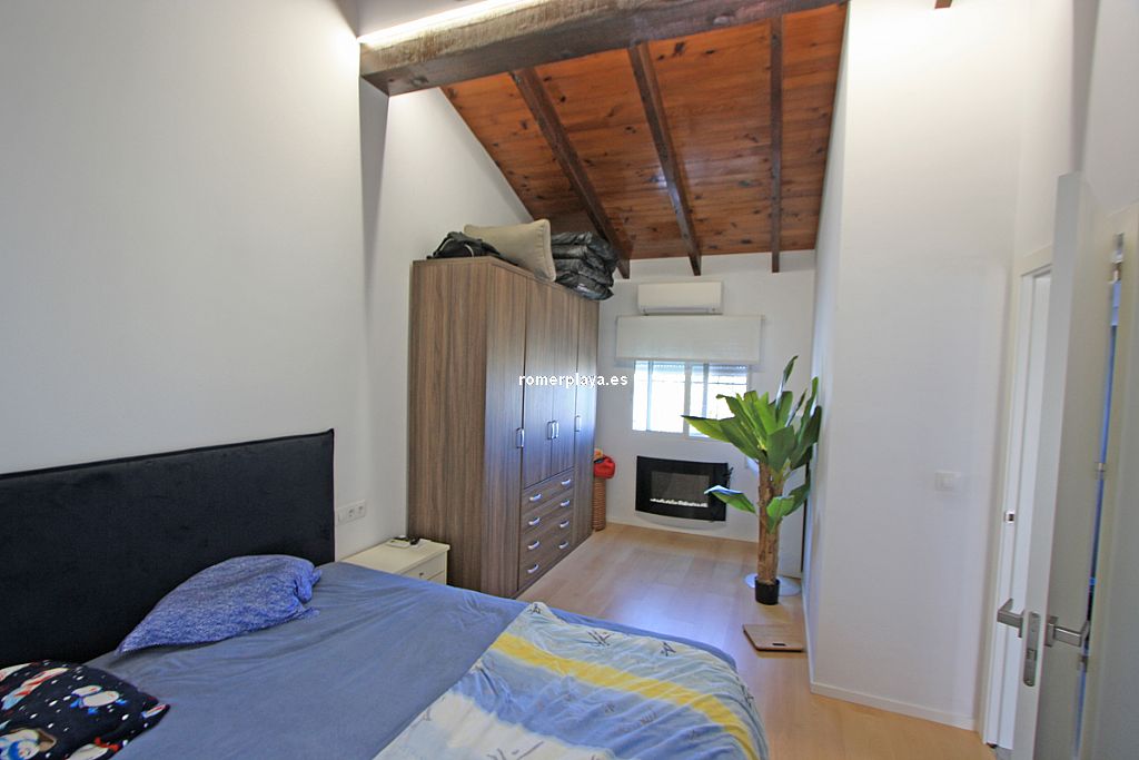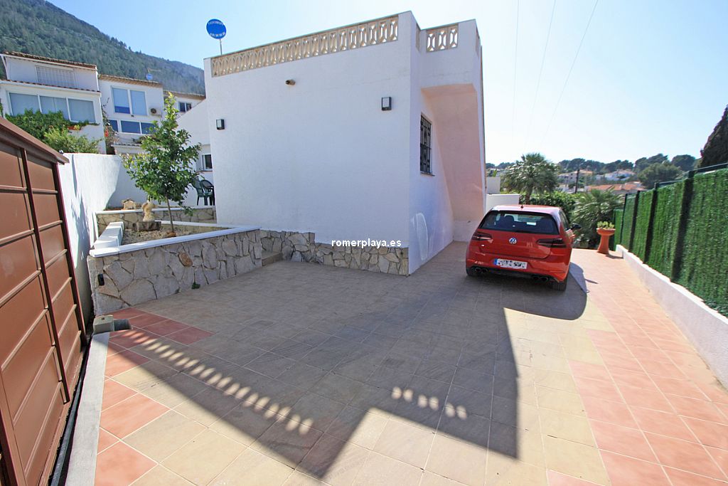 A la venta este acogedor chalet - adosado con parcela (369 m2) propia y pequeño estudio independiente. Zona Marquesa IV soleado todo el año y con magníficas vistas al mar y al golfo de Valencia. Parcela esquinera privada con portón automático de acceso y parking para 2 vehículos. Salón con chimenea, cocina independiente, techos altos, 1 amplio dormitorio (que en origen eran dos) con chimenea eléctrica, gran armario y 1 cuarto de baño con ducha italiana. Desde el salón se sale a una terraza descubierta con vistas al mar, dispone de BBQ, Jacuzzi, se desciende a otra terraza con trastero o se sube a una magnífica terraza solarium con vistas al mar y costa. Por detrás de la edificación y con entrada independiente existe un pequeño estudio de 1 dormitorio, 1 cuarto de baño y 1 cocina. Reformado completamente en 2023 con los mejores materiales: Ventanas de pvc con cristal de seguridad, zona de suelo radiante, gres, laminado, chimenea de leña y otra eléctrica, a/a individual, luces Led, se vende amueblado y con electrodomésticos etc... Tranquila zona residencial habitada todo el año y a escasos 3 km de Dénia y sus playas.