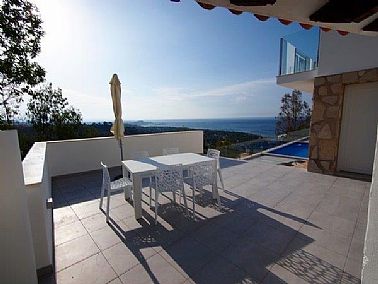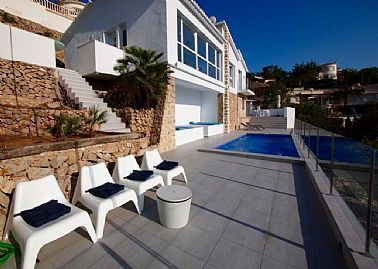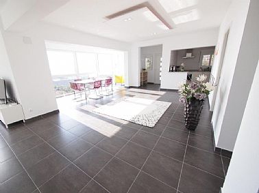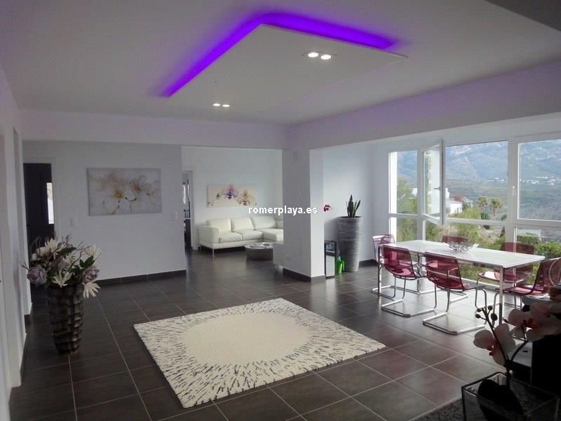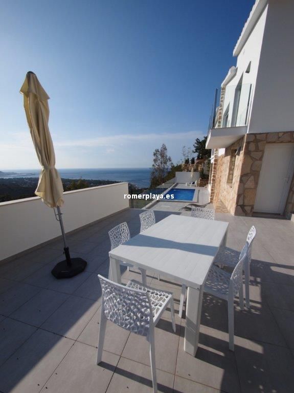 Esta villa renovada ofrece 150 m² de espacio para hasta seis personas y se encuentra en una parcela de 740 m², completamente vallada, con piscina privada (4 x 8 m). A solo 2,4 km (4 min. en coche) de la popular playa de piedras y a 5,4 km (9 min. en coche) de la playa de arena. Denia está a solo 10 minutos. La amplia sala de estar impresiona con su impresionante vista al mar y un acogedor rincón de sofá. La moderna cocina, completamente rediseñada, es ideal para cocinar y está adyacente a la sala de estar y al comedor. La villa cuenta con tres dormitorios: dos con camas dobles (180×200 cm y 160×200 cm) y un tercer dormitorio con una cama adicional en el estudio. Todos los dormitorios están equipados con aire acondicionado y armarios con espejos. La casa tiene un total de tres baños, dos de ellos con WC. El baño de invitados cuenta con una ducha, y en el gimnasio/lavadero en la planta baja hay otra ducha. El aire acondicionado moderno y las ventanas bien aisladas garantizan un ambiente agradable durante todo el año. La propiedad vallada es apta para perros y es ideal para noches de vacaciones relajadas. Disfrute de la piscina, la ducha exterior y la terraza privada con barbacoa. También hay una lavadora y un aparcamiento disponible.