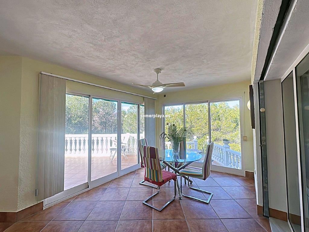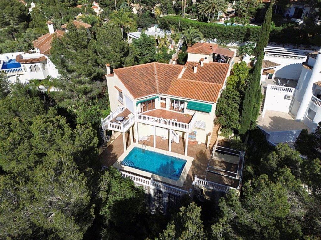 Esta interesante casa de dos familias fue construida en Marquesa IV en 1989 y reformada completamente en 2018. Debido a su proximidad al mar y a Denia, esta tranquila y exclusiva zona residencial no deja nada que desear. La encantadora villa está dividida actualmente en dos unidades residenciales ideales para que una familia numerosa y varias generaciones vivan juntas. Una superficie construida de 250 m2 ofrece amplias estancias con un alto factor de bienestar. La planta baja se distribuye en un salón-comedor con chimenea, una cocina adyacente pero independiente, acceso a la terraza cubierta acristalada y terraza abierta con vistas idílicas al pinar, un aseo de invitados, un dormitorio doble con baño (en suite) y otro gran dormitorio doble con su gran baño en suite (con bañera y ducha) y tocador adyacente. En la planta inferior hay una zona de invitados independiente con dos dormitorios dobles, aseo y baño con ducha, así como una maravillosa terraza con acceso a la hermosa terraza y piscina. El jardín mediterráneo es de fácil cuidado. Dispone de una piscina de 10 x 5 m y una amplia zona para tomar el sol todo el año, así como una terraza con barbacoa y zona de chillout lounge. Una gran terraza con vistas a la piscina proporciona sombra para los calurosos días de verano. Un gran trastero/lavadero en la planta baja, cochera y garaje completan la oferta. Una propiedad privada y soleada, un absoluto oasis de bienestar! La casa está equipada con aire acondicionado 4f/c, calefacción central de gas, radiadores, toldos, ventanas de PVC con doble acristalamiento, persianas y mosquiteras. En el exterior se encuentra la piscina de 10 x 5 y ducha, el hermoso jardín con sistema de riego automático y una pérgola cubierta con un toldo adicional para dar sombra. Esta propiedad única viene completamente amueblada y ofrece alta calidad y está en excelentes condiciones. Visita: con cita previa. La propiedad de aproximadamente 1140 metros cuadrados está bellamente cultivada y ajardinada. Una propiedad en una zona solicitada, absolutamente tranquila, con potencial para propietarios e inversores.