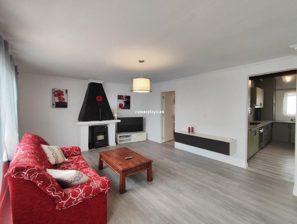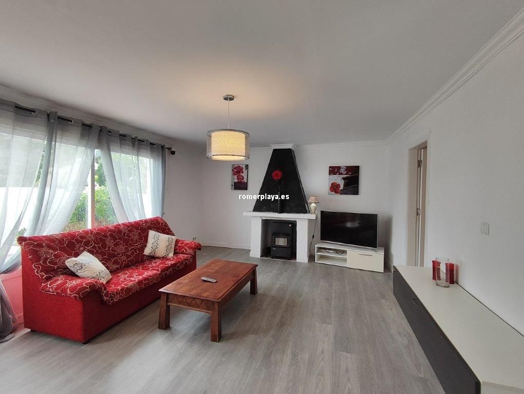 Bonita casa tipo Bungalow, de dos dormitorios muy amplios, salón comedor con chimenea, cocina independiente y baño completo.
