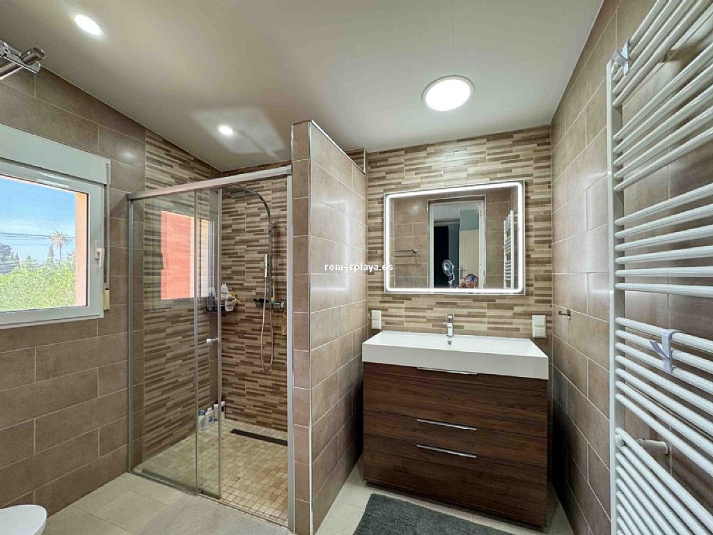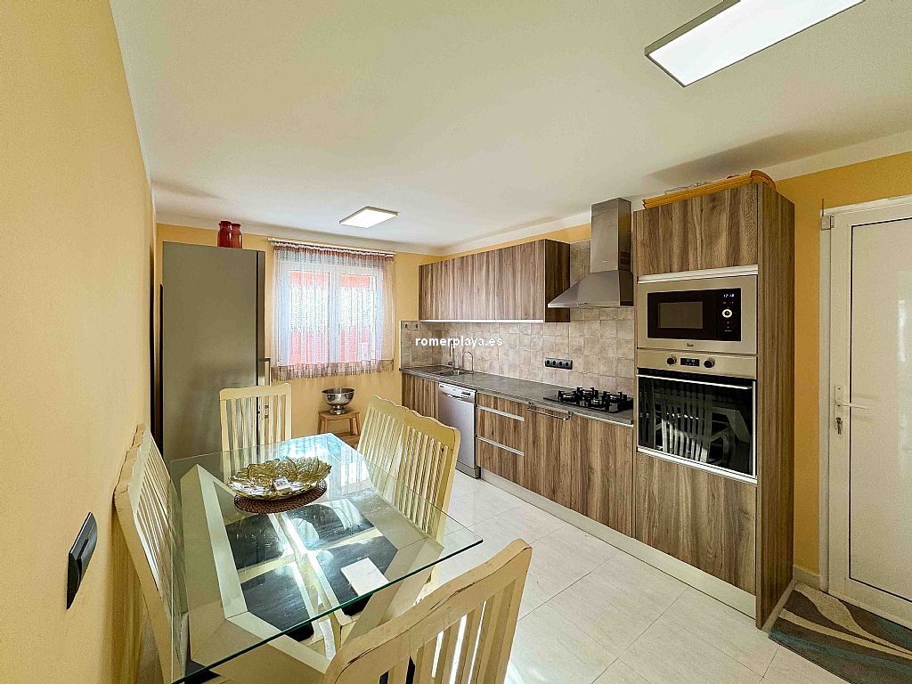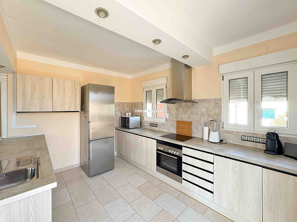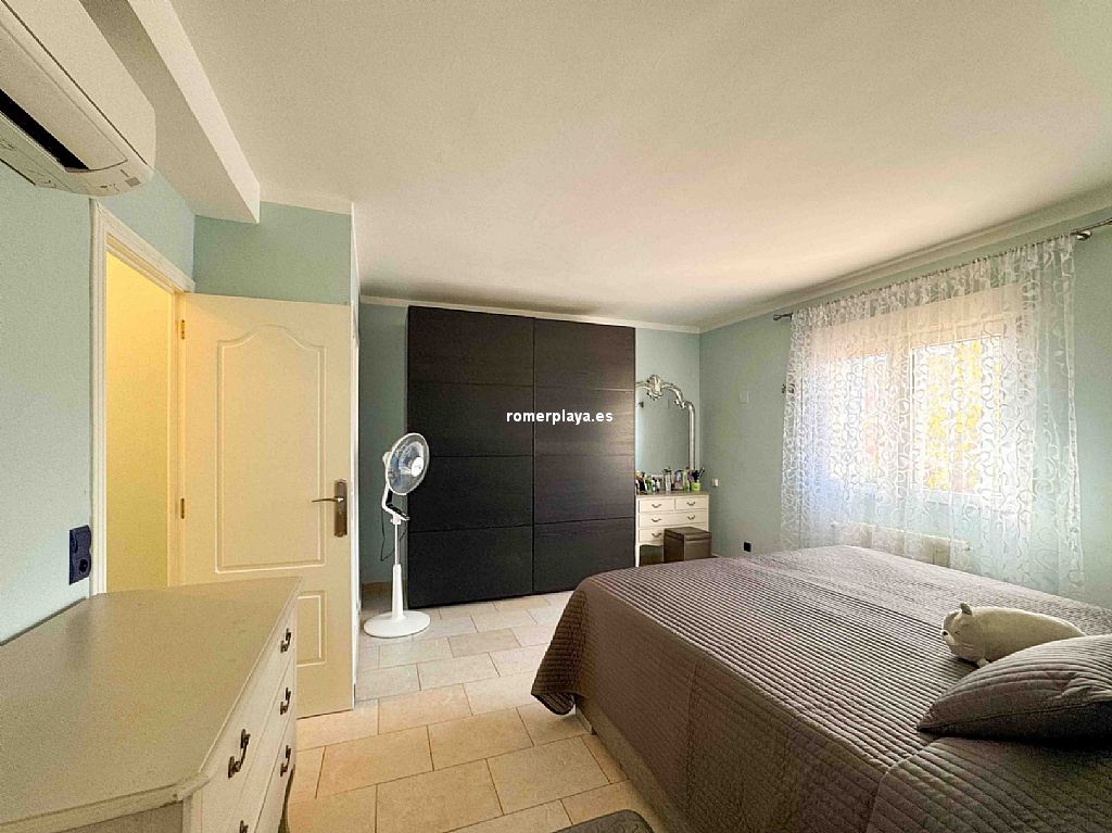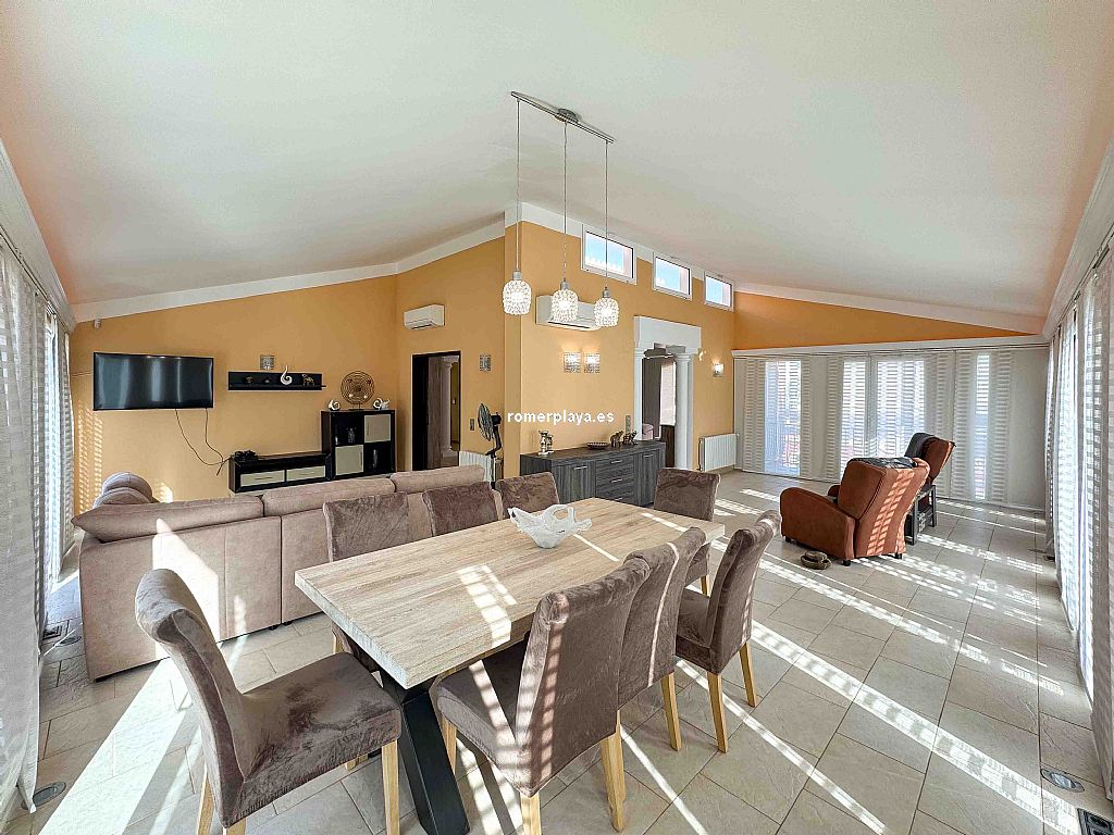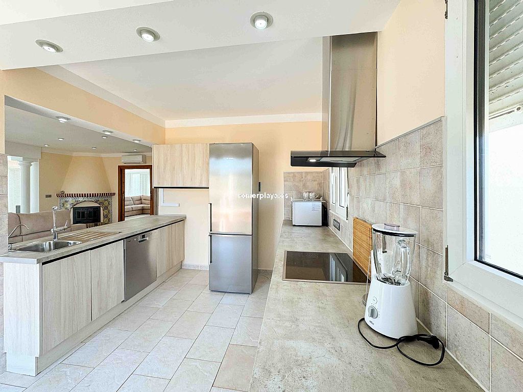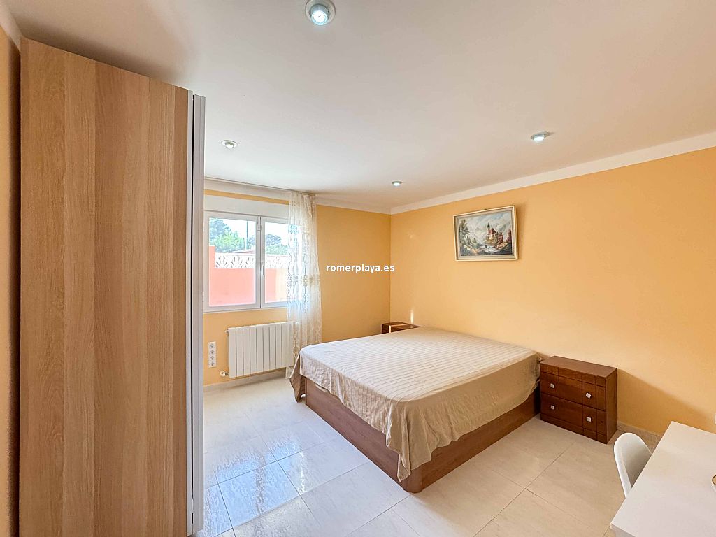Villa privada con piscina situada en una tranquila zona a 1,5 km de la playa de Las Rotas y 3 km del centro de Denia. La casa consta de dos alturas y destaca por su amplitud y luminisidad. Planta baja dispone de tres dormitorios dobles en suit, con armarios, calefacción y aire acondicionado. La cocina está equipada con electrodomesticos, tiene aire acindicionado y su propio acceso al patio, el salon comedor se comunica con la terraza exterión y la piscina. En la planta primera se encuentra una gran salon comedor con chimenea, terraza con vistas a la montaña, sala de juegos, espacio de lectura, cocina, un dormitorio con baño y un aseo. Todas las estancias incluido la terraza tienen a/a y calefacción central de gas, están instaladas placas solares. La parte exteriór nos ofrece privacidad y comodidad, la piscina es de 10x5, tiene una casita con ducha y aseo, un cenador con mesa de comedor, a parte hay una lavandería con armarios altos para almacenamiento.