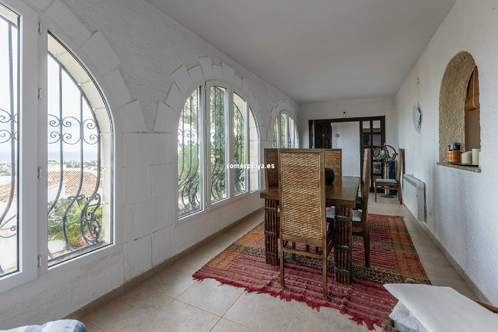 Villa en el Montgó, Dénia, con vistas al mar Ubicada en la zona del Montgó, esta vivienda ofrece tranquilidad y privacidad, a pocos minutos del centro de Dénia, el puerto deportivo y las playas de Las Rotas y Las Marinas. La casa tiene 450 m² construidos sobre una parcela de 968 m². Su diseño combina líneas limpias y materiales de calidad, con grandes ventanales que aprovechan la luz natural y las vistas al mar y al Montgó. Se distribuye en varias plantas y cuenta con: Salón con chimenea y vistas al mar.Comedor con salida a la terraza principal.Cocina equipada con isla central y electrodomésticos de gama alta.Cinco dormitorios y seis baños.Dormitorio principal con baño en suite, vestidor y terraza privada. El exterior dispone de piscina privada, jardín y terrazas con vistas al mar. La orientación sur garantiza buena iluminación durante todo el día. Características principales: 450 m² construidos / 360 m² útilesParcela de 968 m²5 habitaciones y 6 bañosGaraje incluidoCalefacción eléctrica individualAire acondicionadoPiscina y jardín