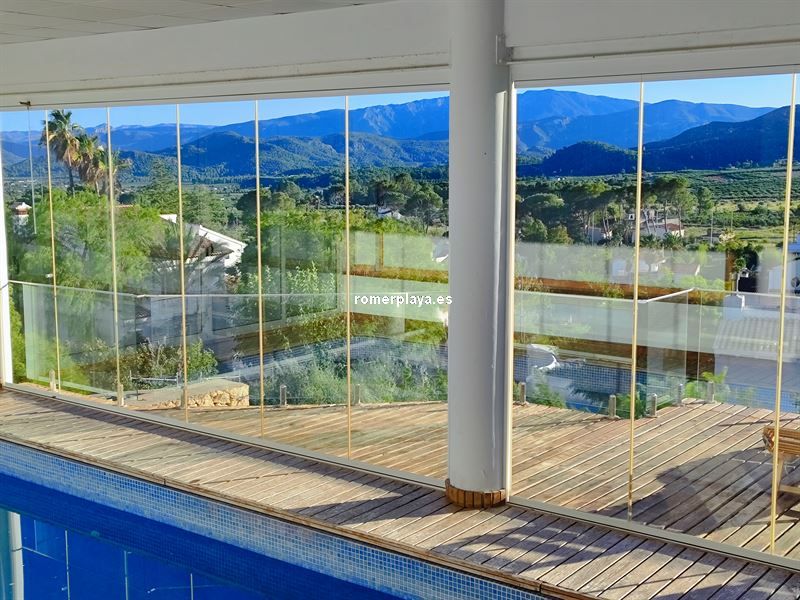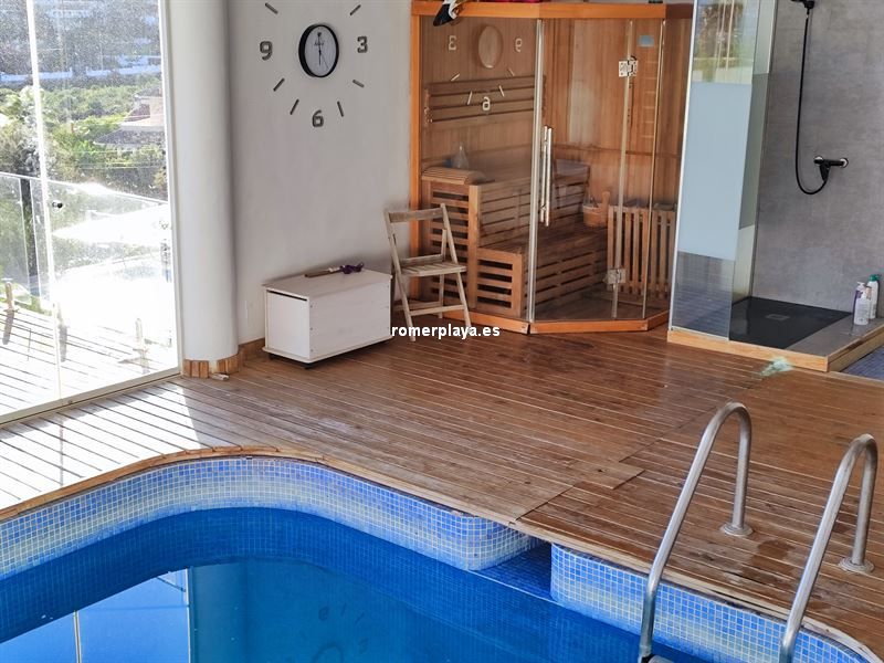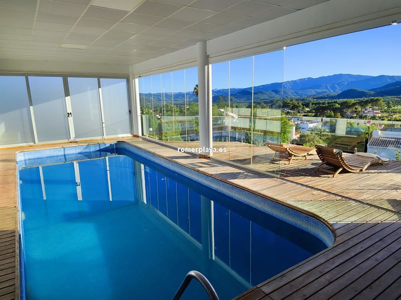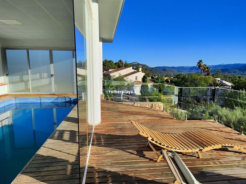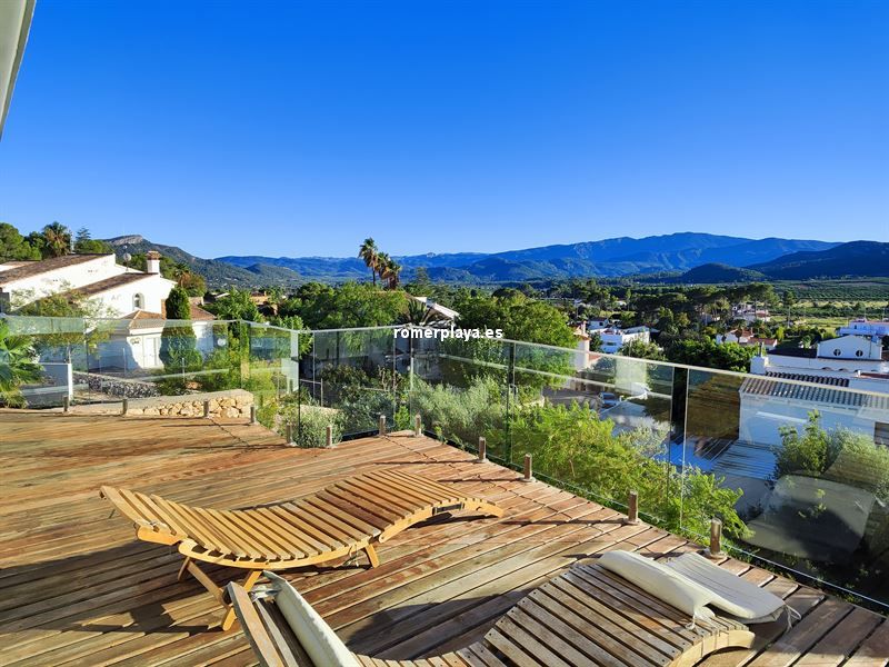 Chalet de alta calidad de tres plantas. Planta baja con zona de piscina climatizada con cristales plegables y terraza con vistas despejadas, sauna finlandesa , ducha, un aseo, zona de juegos, zona de lavandería y garaje. Planta primera con salón comedor espacioso con chimenea, cocina americana y equipada, un aseo . En la misma planta encontramos tres dormitorios espaciosos con armarios empotrados y dos baños . Dormitorio principal con baño en suite y zona de vestidor. La planta superior hcon un dormitorio amplio, un baño y acceso a la terraza aprox. 100 m2. Terraza- solar con vistas a la sierra del Monduver y con un mirador. Chalet tiene ascensor accesible a todas tres plantas. Calefaccion, videoportero, ventanas climalit, suelos de madera sueca y terminaciones de lujo. Se vende semi amueblado. Distancia a Gandia unos 5 km y a las playas 10 km.