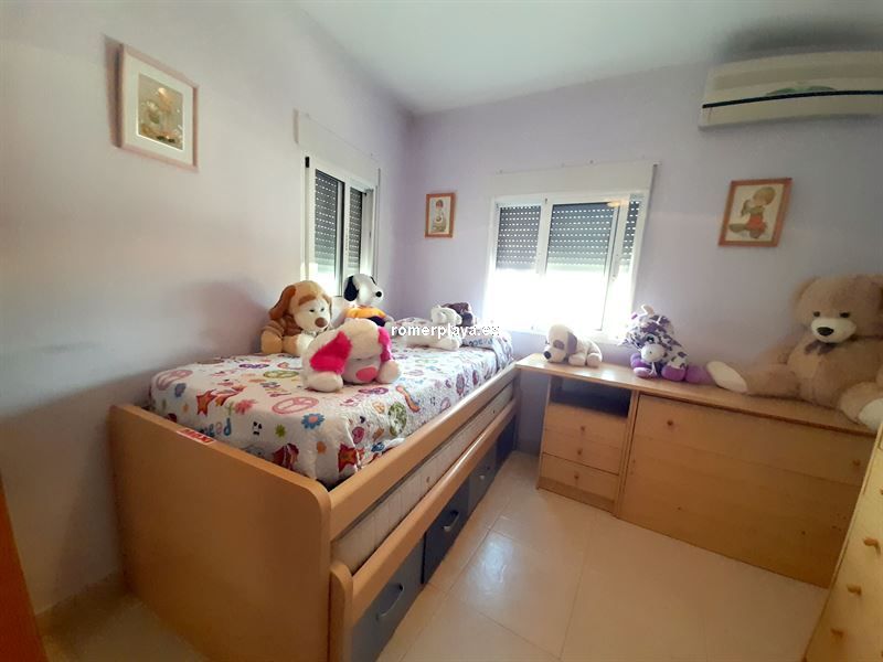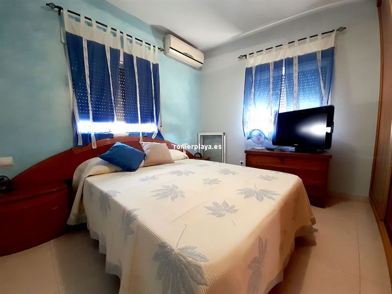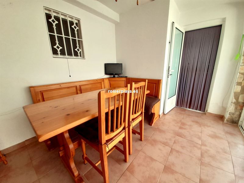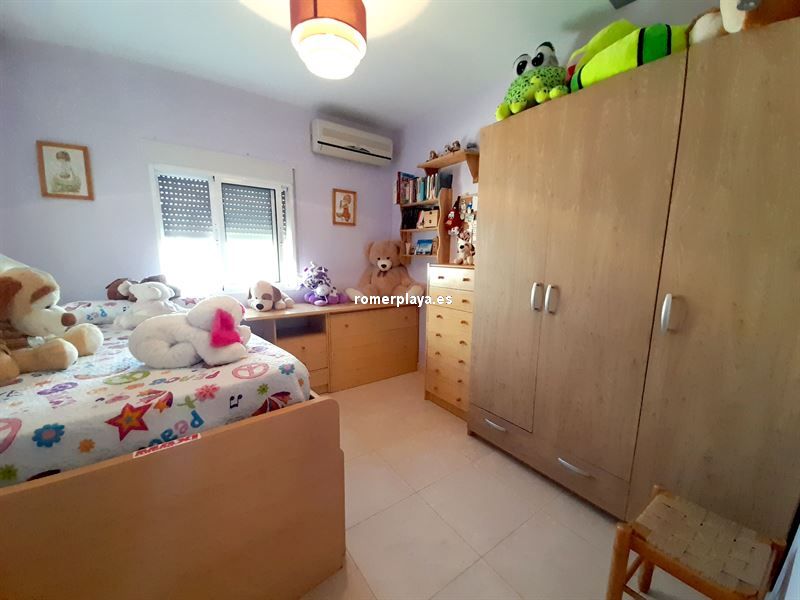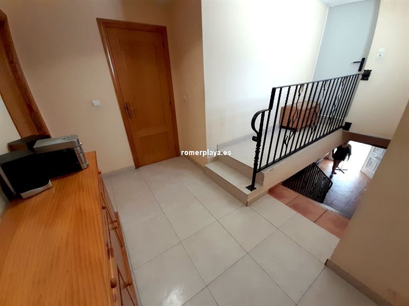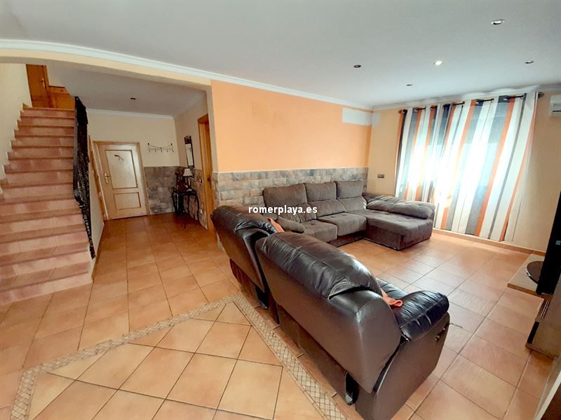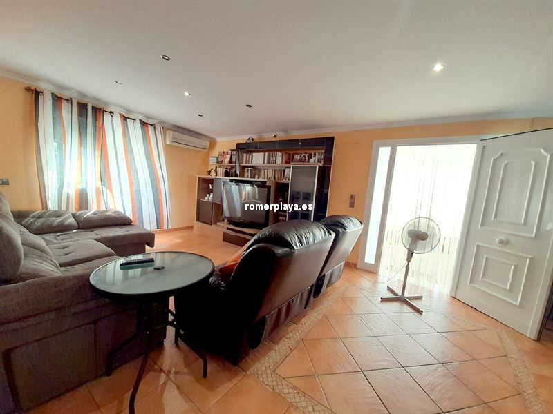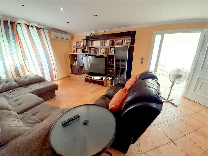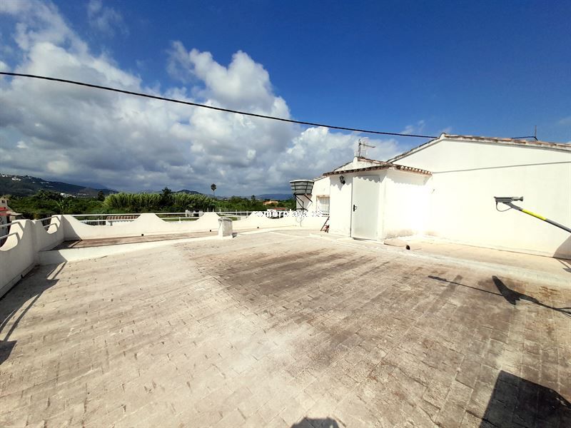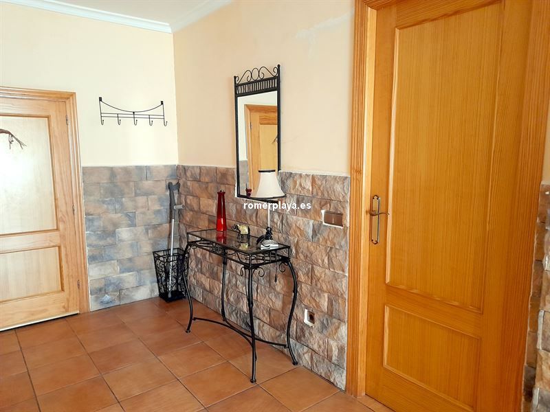 Chalet de dos plantas con 382 m2 de la casa y 2400 m2 de parcela. Planta baja: A la casa acedemos por terraza acristalada con ventanas climalit, a la izquierda puerta al salón comedor con cocina abierta con isla y barra. En la misma planta encontramos un dormitorio y un baño completo con plato de ducha, cocina de verano con puerta al patio interior con piscina con amplias vistas a la montaña. Piscina de 6x5 metros. Baño exterior. En la planta primera hay tres dormitorios, un baño con plato de ducha y salida a la terraza. En la parcela hay una zona de huerto, barbacoa con pérgola de madera, cochera y patio para aparcar varias coches. Casa construida con aislamiento térmico.Ventanas climalit. Todas habitaciones con aire accondicionado F/C. Luz de red, agua de aguja de profundidad. Distancia al mar 1 km.