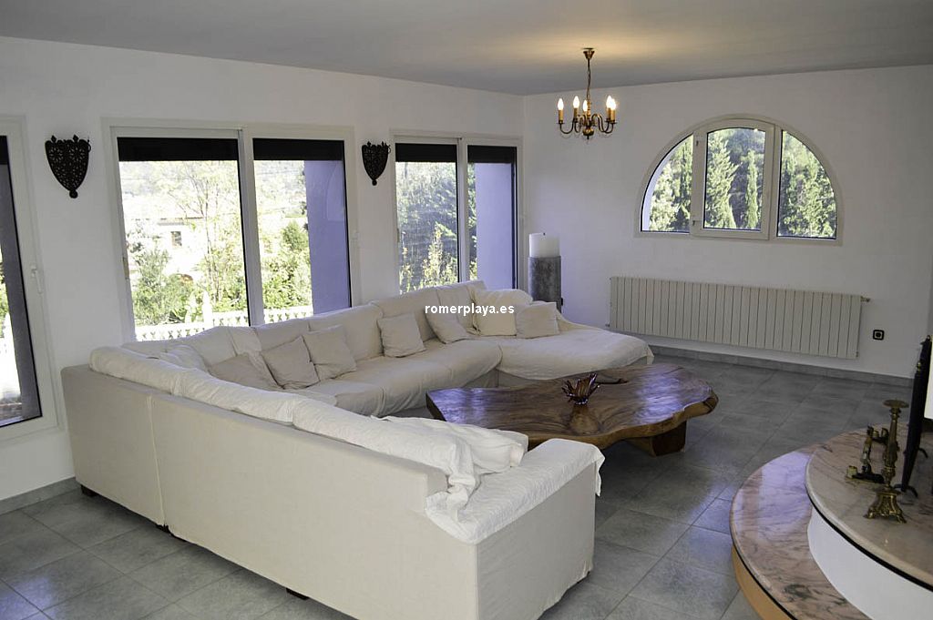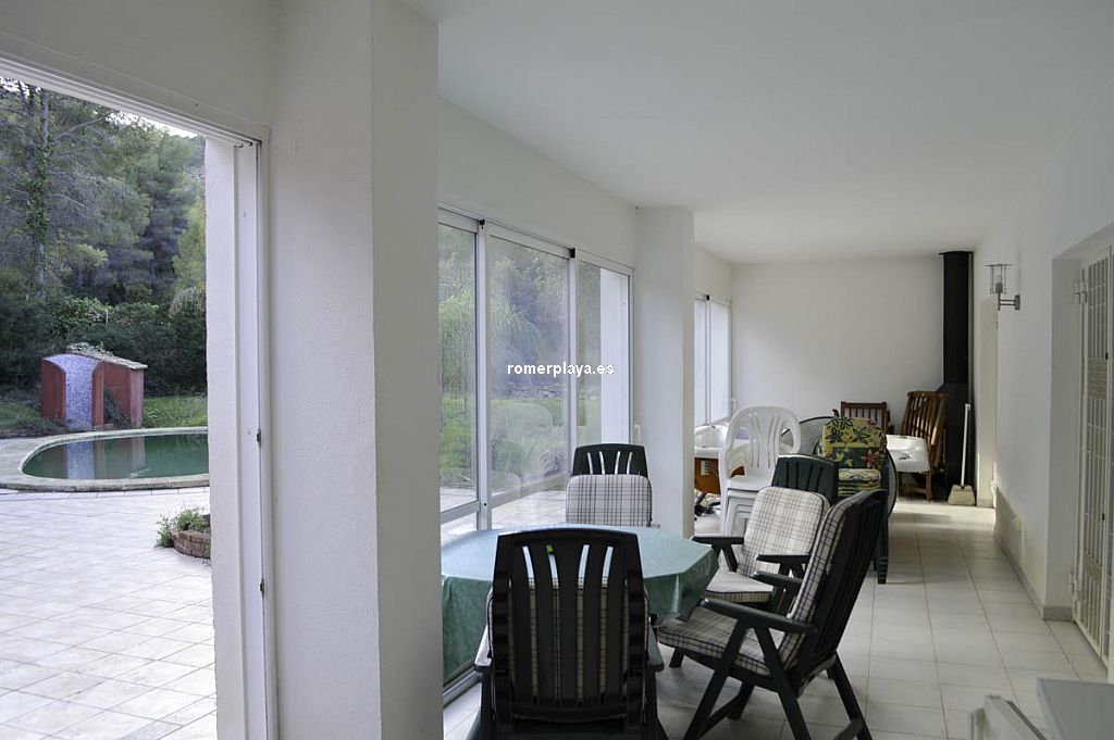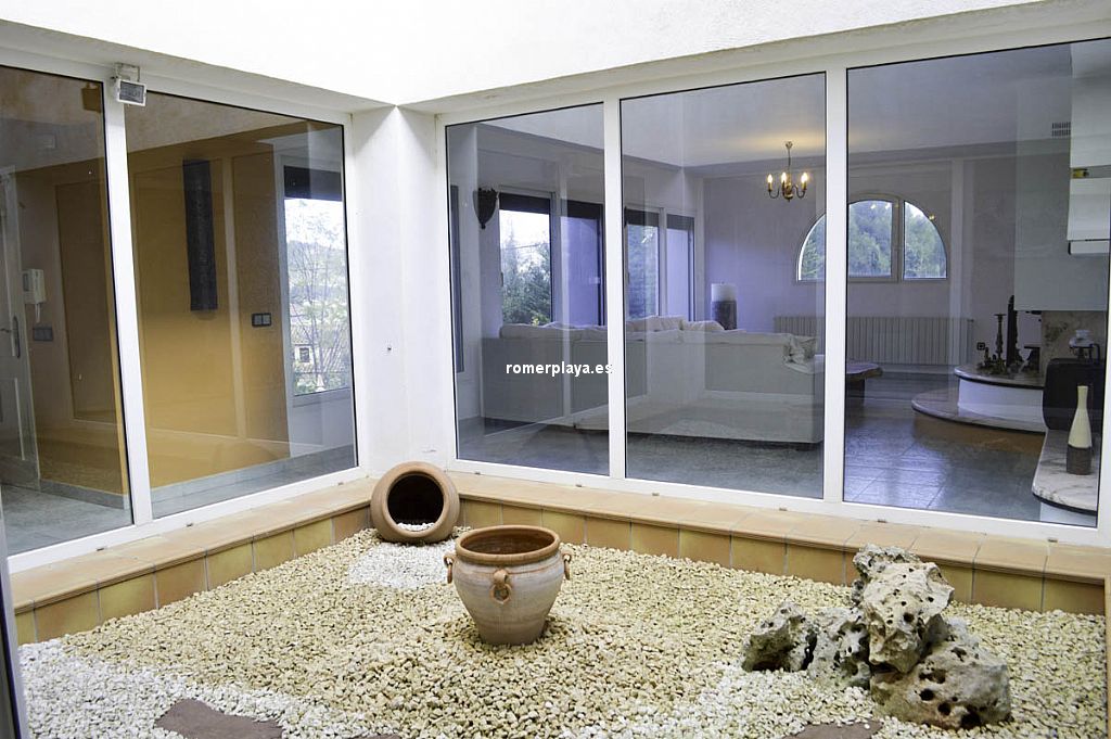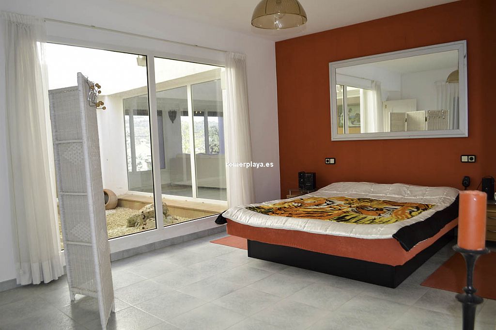 xclusiva villa en la mejor zona residencial de Pedreguer sobre una parcela de 3.558 m2 La vivienda se distribuye en un apartamento independiente en planta baja con 2 dormitorios, cocina cerrada, 1 baño y salón comedor. En la planta de arriba encontramos la vivienda principal, con 4 dormitorios, 3 baños, hall de entrada, salón comedor con chimenea, amplia cocina, cuarto de lavar, patio interior y 2 amplias terrazas cubiertas y acristaladas, una con orientación Este y la otra con acceso directo a la piscina y con chimenea. Buenas calidades de construcción, con ventanas de PVC con doble cristal, persianas automáticas, calefacción central, aire acondicionado, ... Vivienda muy luminosa y espaciosa. Cuenta también con 3 plazas de garaje subterráneas con puerta, para utilizar tanto como parking como trastero. Parcela de 3558 m2 con mucha zona de jardín, parking exterior, piscina, terraza, ducha exterior, ... En una zona privilegiada. Una propiedad para disfrutar de amplitud y privacidad sin renunciar a estar cerca del pueblo y sus servicios, a tan sólo 1 km.