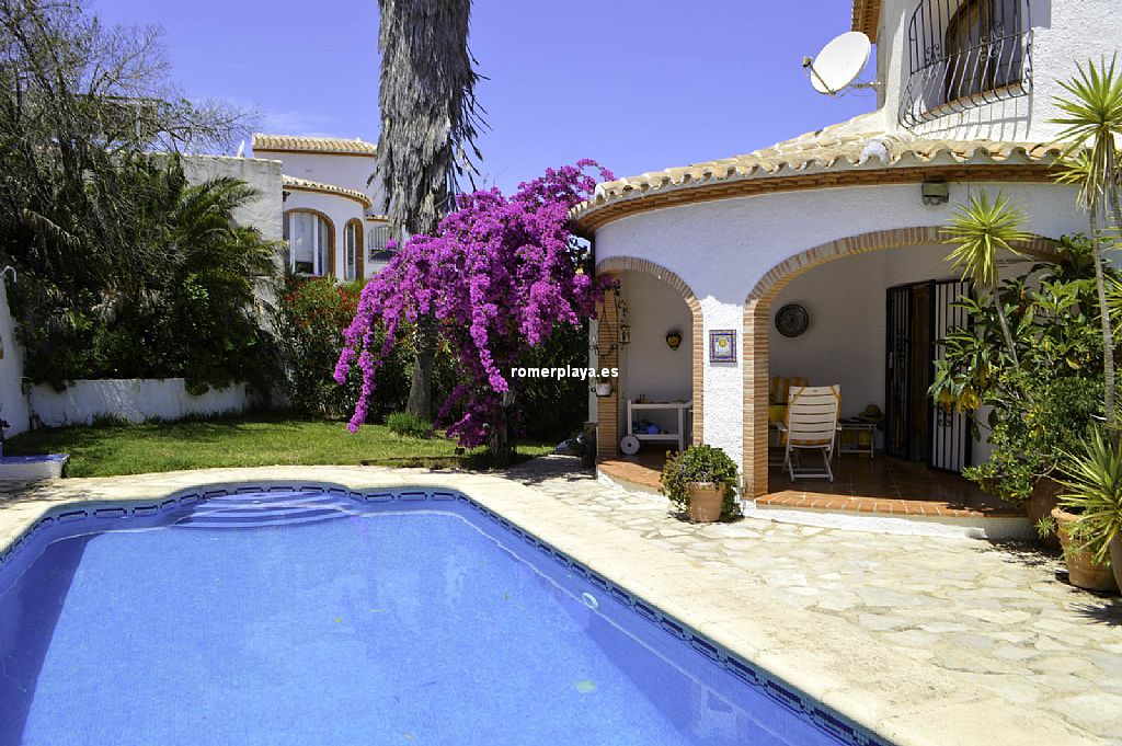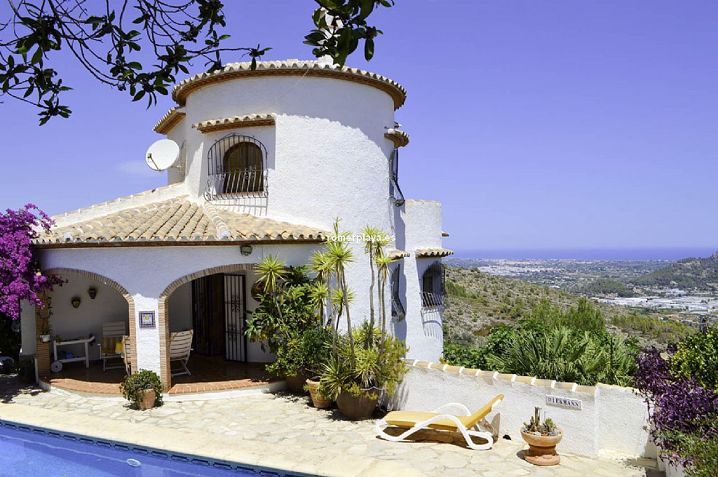 Oportunidad de adquirir una villa de 3 dormitorios y 2 baños soleada y con vistas al mar. La vivienda consta de 2 plantas. En la planta de abajo nos encontramos con 2 dormitorios dobles, un amplio baño, cocina, salón comedor con chimenea y estufa y terraza cubierta con acceso directo a la piscina privada. Mediante escalera exterior accedemos a la planta de arriba, con un dormitorio doble y otro baño completo así como un amplio solarium con impresionantes vistas al mar. Con buenas calidades de construcción, aire acondicionado frío-calor, ventanas de madera con doble cristal, estufa eléctrica, cabina sauna, armarios empotrados, ... Construida en una parcela independiente de 719 m2 con piscina, jardín, ducha exterior, terrazas y garaje cerrado. Ubicada en Monte Pedreguer, a tan solo 2 kms. de Pedreguer y Gata de Gorgos. 4 kms. de la autopista para un rápido acceso a los aeropuertos de Alicante y Valencia y del Campo de Golf de La Sella. No deje pasar esta magnífica oportunidad y pida una visita sin compromiso.Opportunity to acquire a sunny villa with 3 bedrooms and 2 bathrooms with sea views. The property consists of 2 floors. On the ground floor we find 2 double bedrooms, a large bathroom, kitchen, living room with fireplace and cooker and covered terrace with direct access to the private pool. By external staircase we access to the upper floor, with a double bedroom and another complete bathroom as well as a large solarium with stunning sea views. With good qualities of construction, air conditioning hot-cold, wooden windows with double glazing, electric cooker, sauna cabin, built-in wardrobes, ... Built on an independent plot of 719 m2 with swimming pool, garden, outdoor shower, terraces and closed garage. Located in Monte Pedreguer, only 2 kms. from Pedreguer and Gata de Gorgos. 4 kms. from the motorway for quick access to Alicante and Valencia airports and La Sella Golf Course. Don't miss this magnificent opportunity and ask for a visit without obligation.