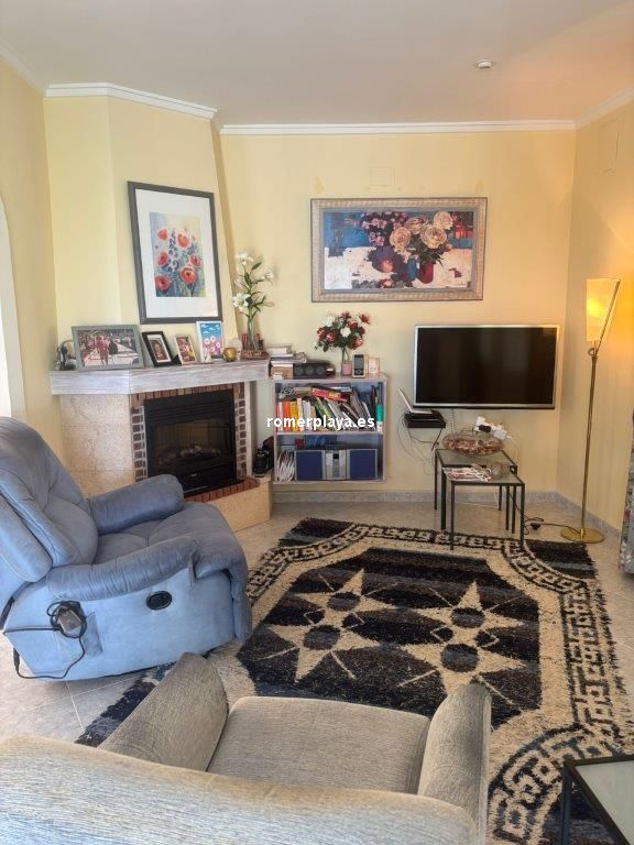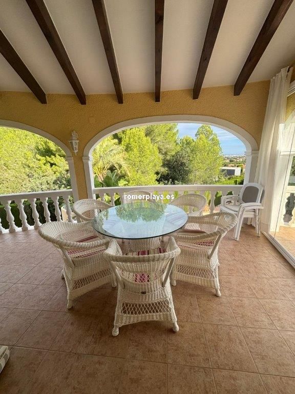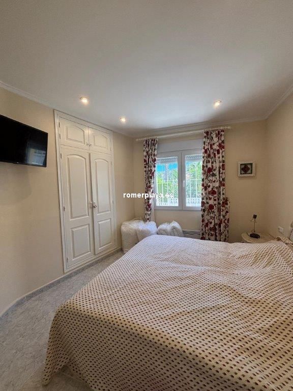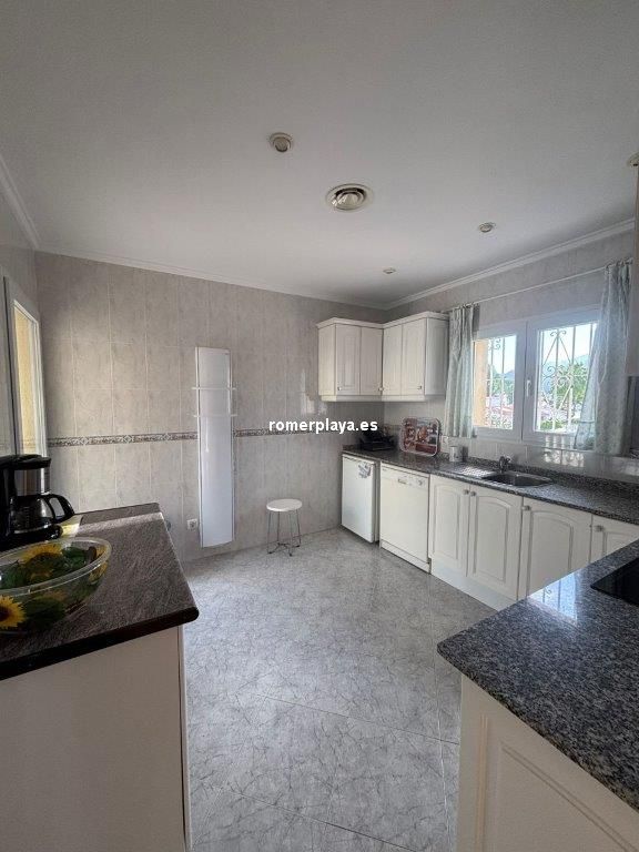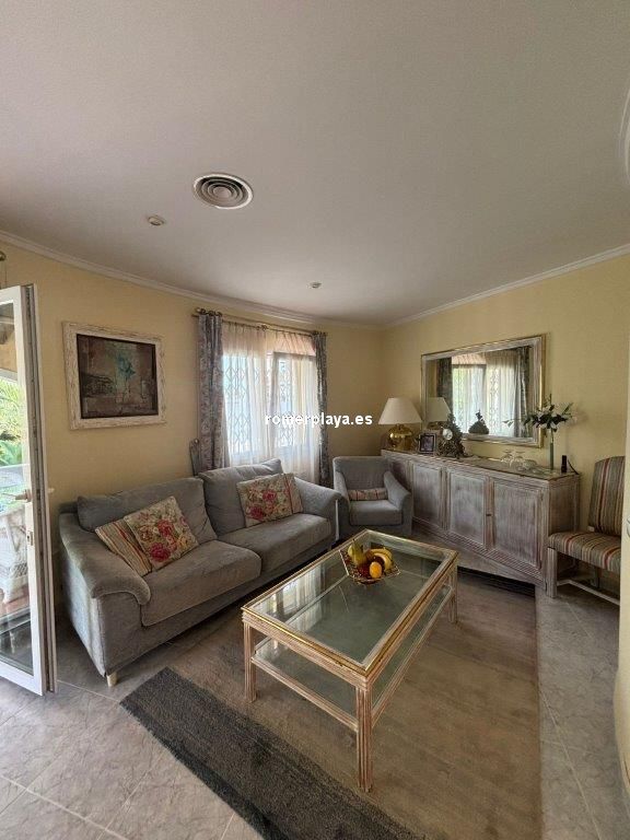 Esta maravillosa villa independiente impresiona por sus vistas abiertas y despejadas al mar. Consta de dos plantas. La planta baja cuenta con una sala de estar independiente y totalmente equipada para invitados o para uso individual. La planta superior se distribuye en un amplio salón, dos dormitorios, dos baños, cocina, lavadero y trastero, además de un comedor en el centro de la villa. Una gran terraza y un porche acristalado completan la planta. La villa está equipada con aire acondicionado central y chimenea. Las ventanas son de doble acristalamiento. En la planta baja, encontrará otro salón con dos dormitorios y un baño. Accesible desde el exterior, hay un amplio espacio para guardar diversos electrodomésticos y objetos personales. La zona exterior de 600 m², muy bien cuidada y con plantas mediterráneas, incluye piscina, ducha exterior y plaza de aparcamiento.