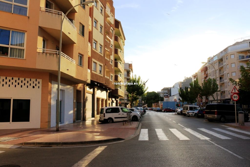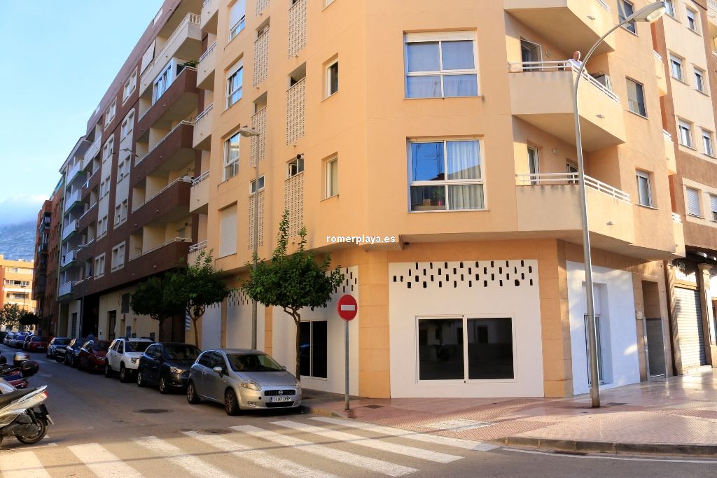La ubicación es muy buena, frente a una plaza con parque infantil, aparcamiento para minusválidos y aparcamiento para bicis. La acera es muy amplia y el local es muy visible tanto desde la plaza, como desde la acera y la circulación rodada. La calle y la plaza tienen una elevada afluencia de gente ya que está la Policia Local de Denia, donde se emiten los DNI y Pasaportes así como la documentación para los Extranjeros. Es una zona concurrida, con negocios bien establecidos como la Farmacia y Óptica Romany. El local comercial se sitúa en el camino de paso entre el Ambulatorio y la Farmacia.