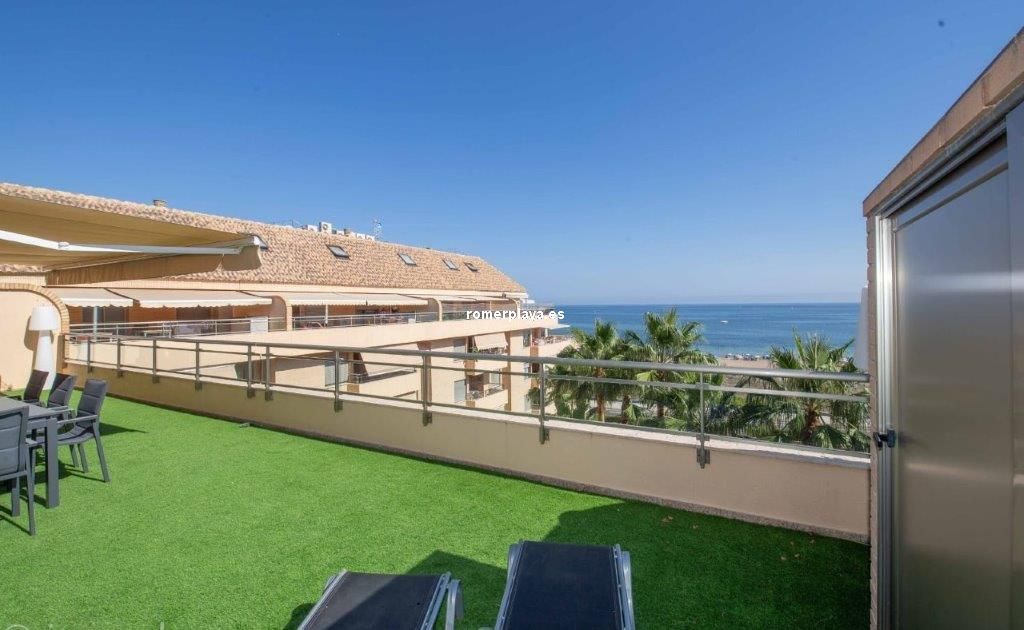 Wir bieten Ihnen dieses exklusive Penthouse mit Blick auf das Meer, in einer privilegierten Enklave nur 500 Meter vom Stadtzentrum und einen Schritt entfernt von einem der wunderschönen Strände von Dianes. Das Penthouse verfügt über zwei große Terrassen, eine von ihnen perfekt, um im Sommer für seine unglaubliche Aussicht und Orientierung und die andere sehr sonnig im Winter zu genießen, um es zu genießen. Es besteht aus einem großen Wohn-Esszimmer mit Einbauküche und Zugang zu den beiden Terrassen, zwei Schlafzimmer und zwei Bäder im Erdgeschoss und ein Schlafzimmer mit Ankleideraum und ein weiteres Bad im Obergeschoss. Es hat auch einen Parkplatz in der Oberfläche, sondern überdacht (alle in der Urbanisation sind ähnlich) Seine privilegierte Enklave macht es zu einem einzigartigen Haus, wenn Sie für ein Haus dieser Eigenschaften suchen, verpassen Sie nicht die Gelegenheit und besuchen Sie es.