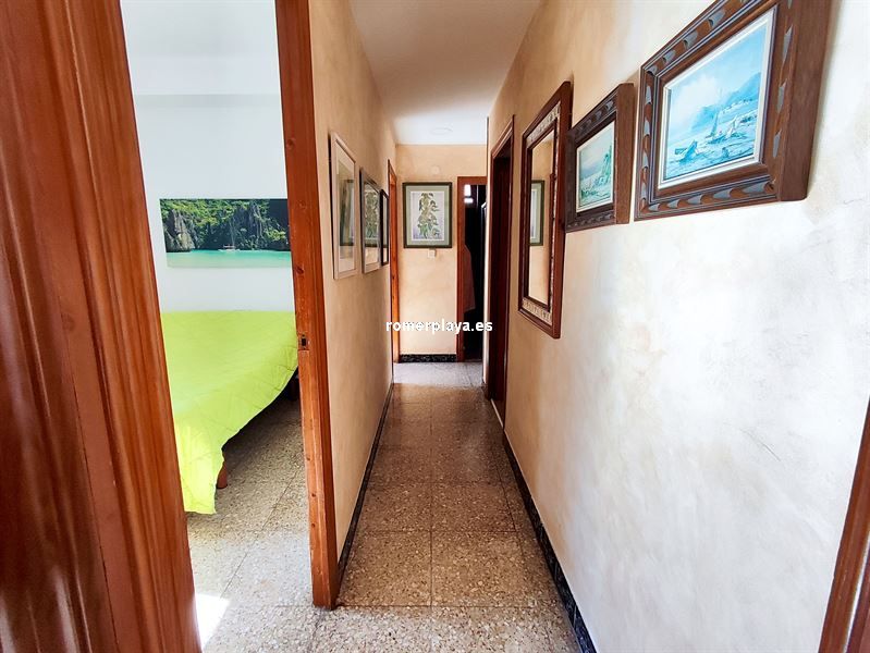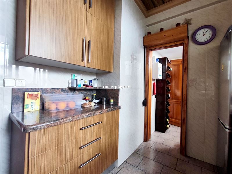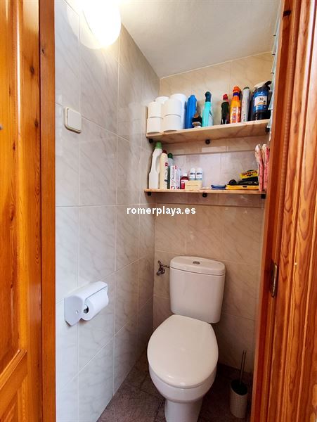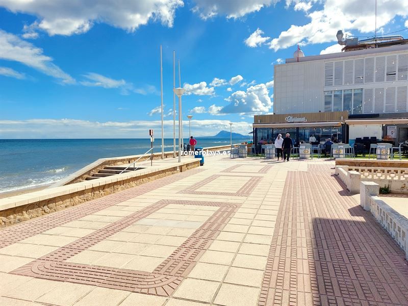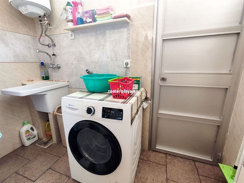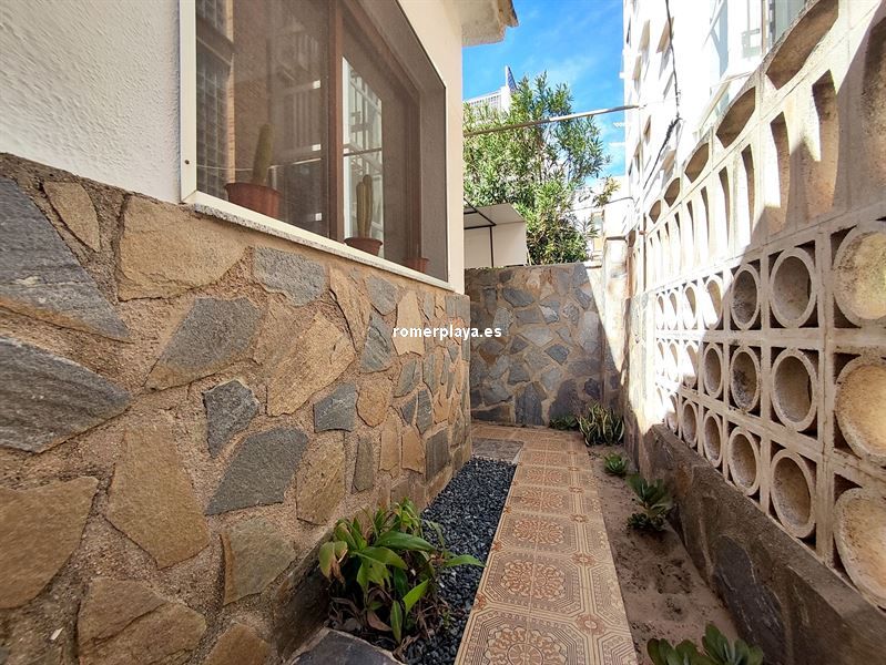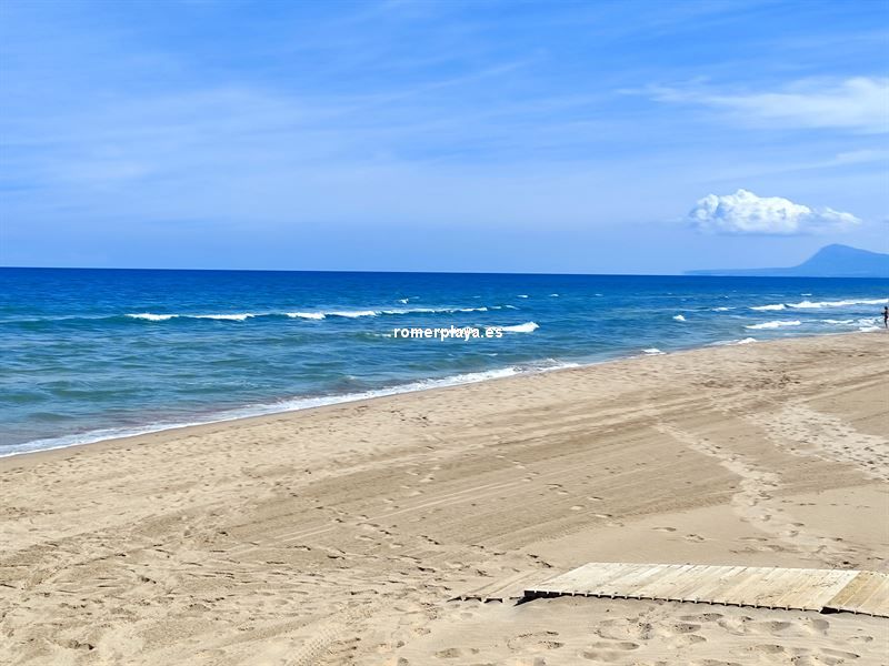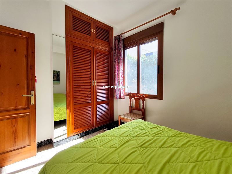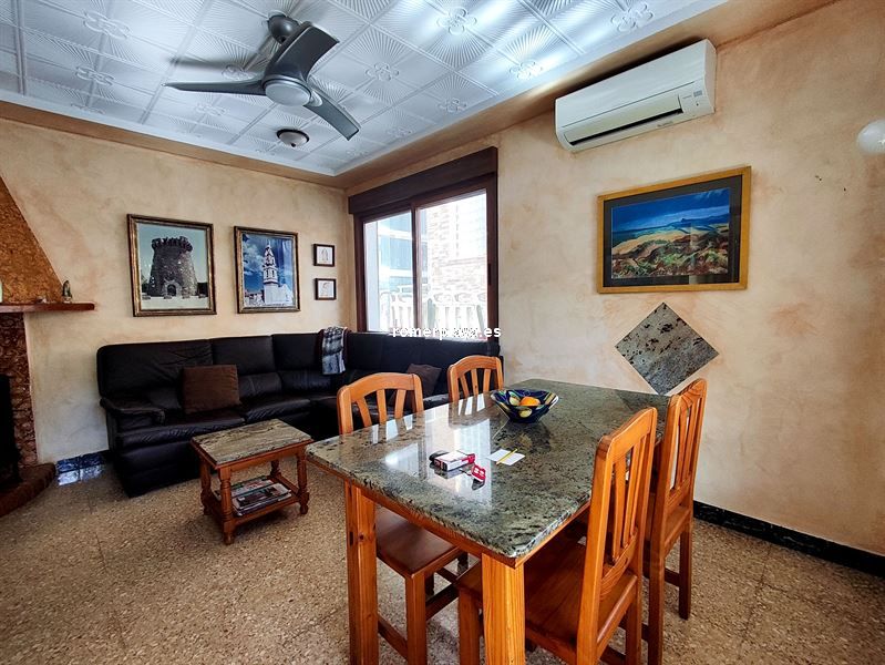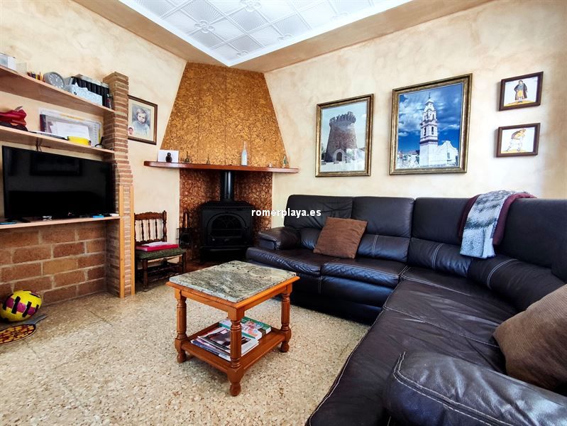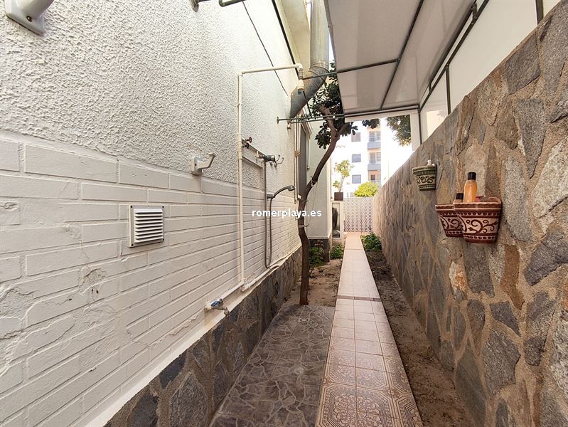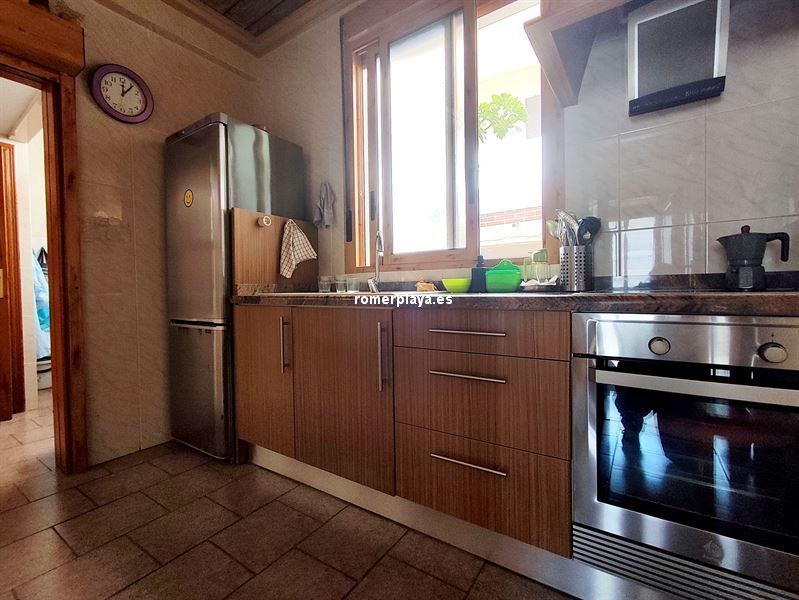Beautiful and bright semi-detached villa built with high-quality materials, located on Piles beach just 50 metres from the Mediterranean Sea. Single-storey property, 104 square metres built on a 151 m2 plot. At the main entrance there is an outdoor terrace sheltered from the wind and sun. Next, we enter a spacious living-dining room with a fireplace and air conditioning, a separate fitted kitchen with a utility room, a toilet and access to the outdoor barbecue area. Three double bedrooms with wardrobes and a bathroom with a shower tray. Outside there is a staircase leading to the terrace with a storage room. The house is surrounded by plants and has an outdoor area with a shower. Individual closed garage with automatic door. Double glazed windows. The property is sold with furniture and appliances. Year of construction 1970. Distance to the sea only 50 metres.