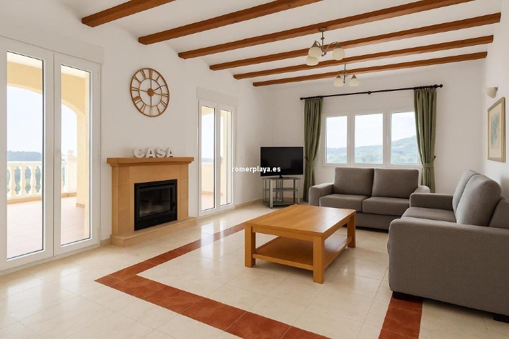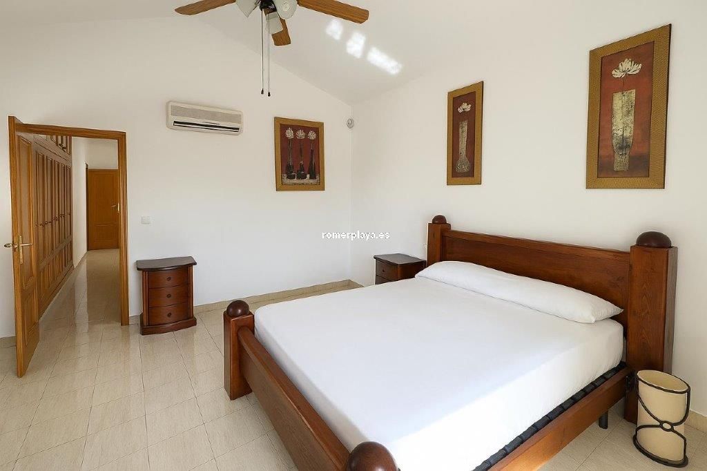 Dénia, La Sella residential area, with a plot of 1,699 m², of which 379 m² are built. Detached villa comprising 3 bedrooms with 3 bathrooms, distributed as follows: master bedroom with dressing room, 1.50m bed and bathroom on the top floor, covered patio with toilet, kitchen, dining room, living room, two double bedrooms each with their own bathroom, terrace and swimming pool with barbecue area and incredible views of the golf course and the sea on the middle floor, and a separate garage with a large open-plan room that includes a full bathroom, to be used as desired, whether as a separate flat, gym or games room. Surrounding the house are large green areas, as well as space to park several vehicles. It has independent air conditioning on the top and middle floors. It is a charming villa, very bright and with a lot of potential, for those looking to live in a spacious, luxurious and peaceful property. The property has a tourist apartment licence for those looking to make an investment or earn a return on a second home.