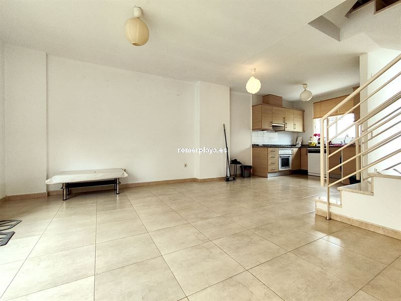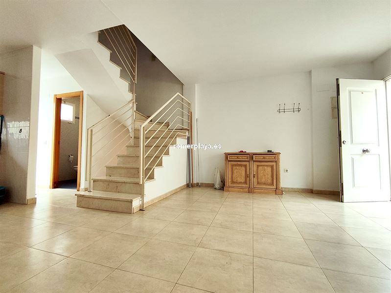 Grande maison mitoyenne individuelle dans le village de Piles, à seulement 1,5 km de plage de sable blanc. Maison de 165 m² sur quatre étages. Rez-de-chaussée avec grand salon-salle à manger avec cuisine ouverte et toilettes. Le rez-de-chaussée dispose de deux terrasses : une à l'arrière de l'entrée et une à l'avant, de type patio, d'une superficie totale de 23 m². Au premier étage, trois chambres, dont deux avec placards intégrés, et une grande salle de bains. Deuxième étage mansardé avec une chambre ou une salle de jeux donnant sur une grande terrasse d'environ 19 m². Au sous-sol de 60 m², on trouve un grand débarras et un double garage. La maison est située dans un lotissement fermé au centre du village et à proximité de tous les services nécessaires.